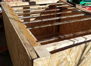 Aveam prin curte tot felul de lemne. Am facut-o ca pe o cutie de 1.20m/0.8m.I-am facut capac si o gaura pe lateral pentru burlan. De la aceea gaura vom trage un burlan 1.5 m pana la o groapa unde vom face focul. Fumul rece va ajunge astfel la bunatatile agatate la afumat.