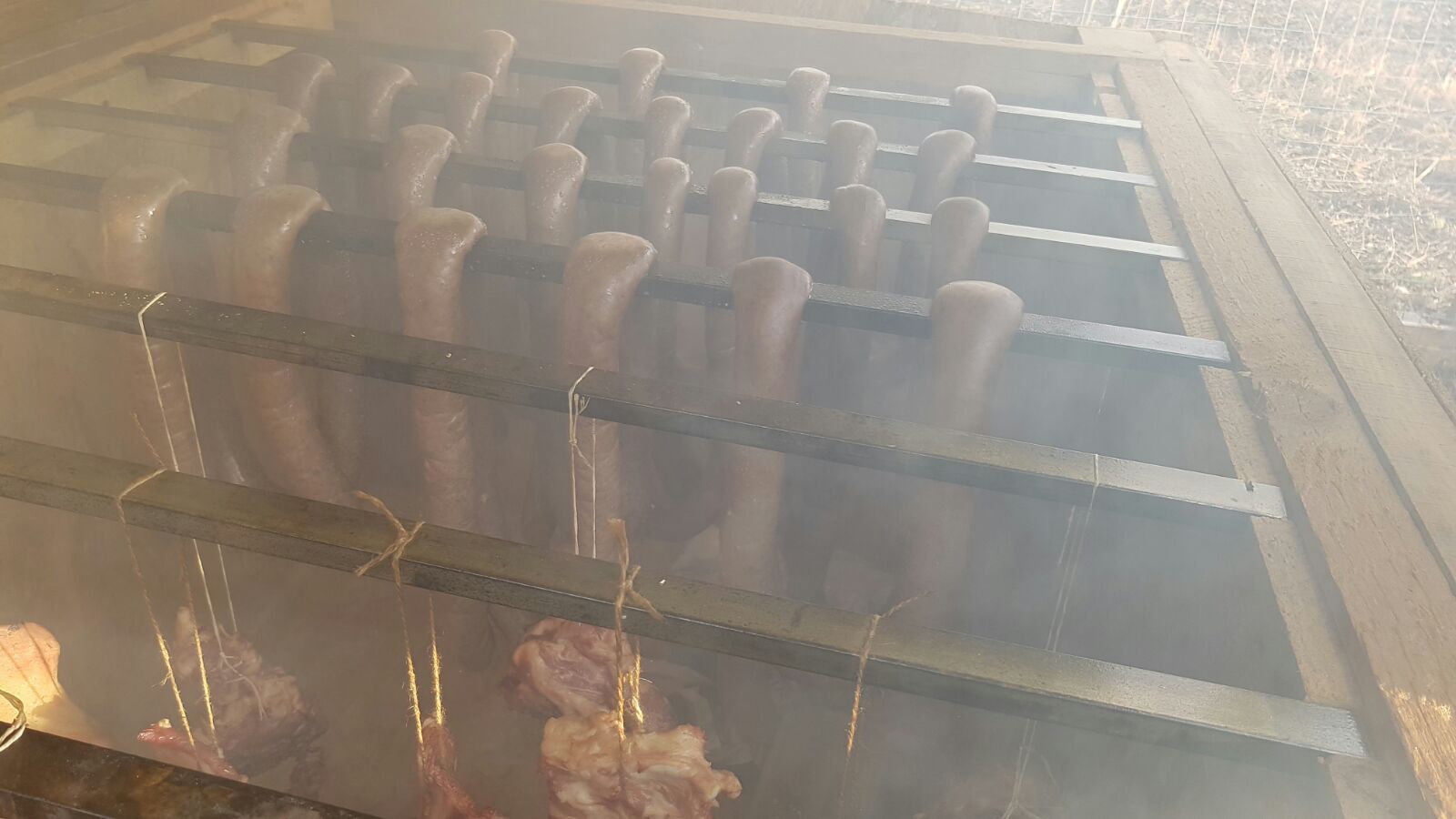 A doua zi am pus la afumat carnatii, cateva coaste de porc si un muschi.Sotul meu este foarte incantat de afumatoarea facuta.Am crezut ca este foarte mare, dar cand am bagat toate cele in ea am hotarat ca am facut o treaba grozava.