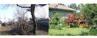 Casa era batraneasca si neingrijita.In casa totul era vopsit verde, paturi 1-2 in fiecare camera, cu saltele din paie, geamuri cate 2-3 in fiecare camera. Curtea de asemenea, cu multe garduri de sarma puse la pamant, cu radacini de pomi(multi pomi fructiferi taiati cu bestialitate), cu portiuni mari fara iarba, batatura goala. Arata dezolant, dar noi am vazut ce am putea face si cum am putem aranja totul asa incat sa ii dam o cu totul alta fata.
