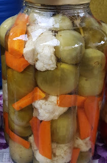 Conservareala si iar conservareala.Gogonelele cu conopida si morcovi, gogosari umpluti cu varza rosie, ardei capia copti si pusi la borcan, salata de iarna din morcovi, gogonele, conopida, telina tocate si bagate la murat.Bocanele frumos aranjate ne-au umplut pivnita si camara.Gradina noastra roditoare s-a mutat in borcane, borcanele si sticle.