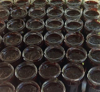 Ne-am apucat rapid de adunat rosiile(eu as mai fi vrut sa lenevesc putin, recunosc, dar mama hai si hai).6 galeti cu varf de rosii bine coapte..Spalate, taiate, date prin masina si puse pe foc in tuci.Ce usor pare...dar va asigur ca nu e.Dupa 2 ore eram rupta de spate....In timp ce bulionul trebuie lasat sa scada pe foc, am spalat sticle, capace si le-am pus la uscat.